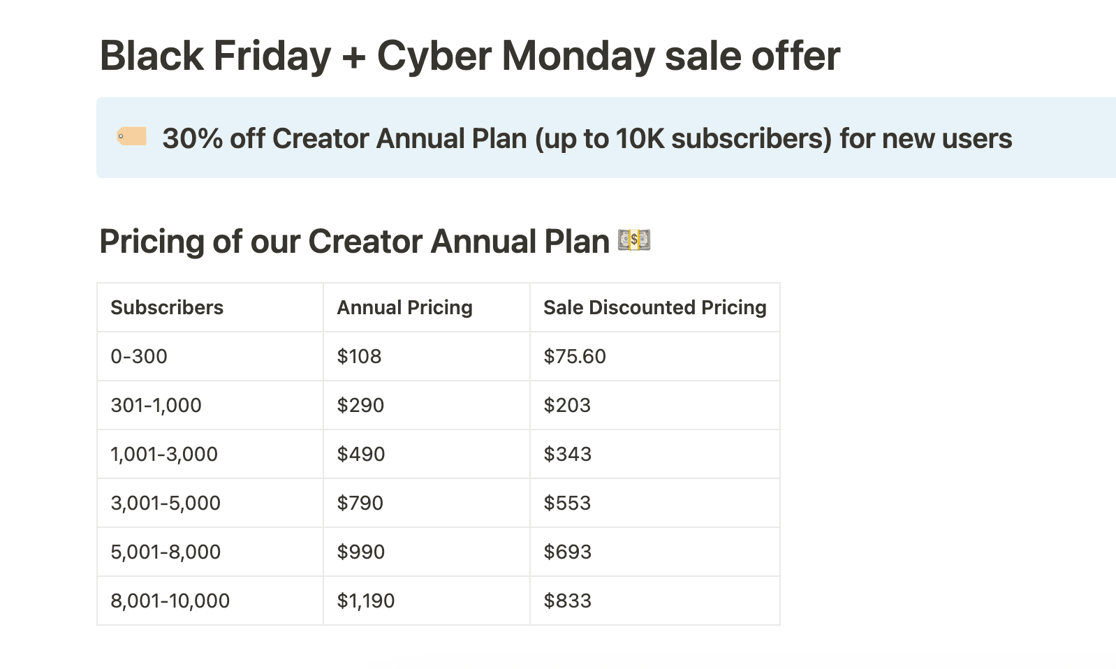 Finally, want to try Kit at their Cyber Monday pricing? The promotion ends today! I just grabbed a screenshot below to help you visualize the promo. 30% off their annual Creator Plan for accounts under 10K subscribers. It's a pretty sweet deal!